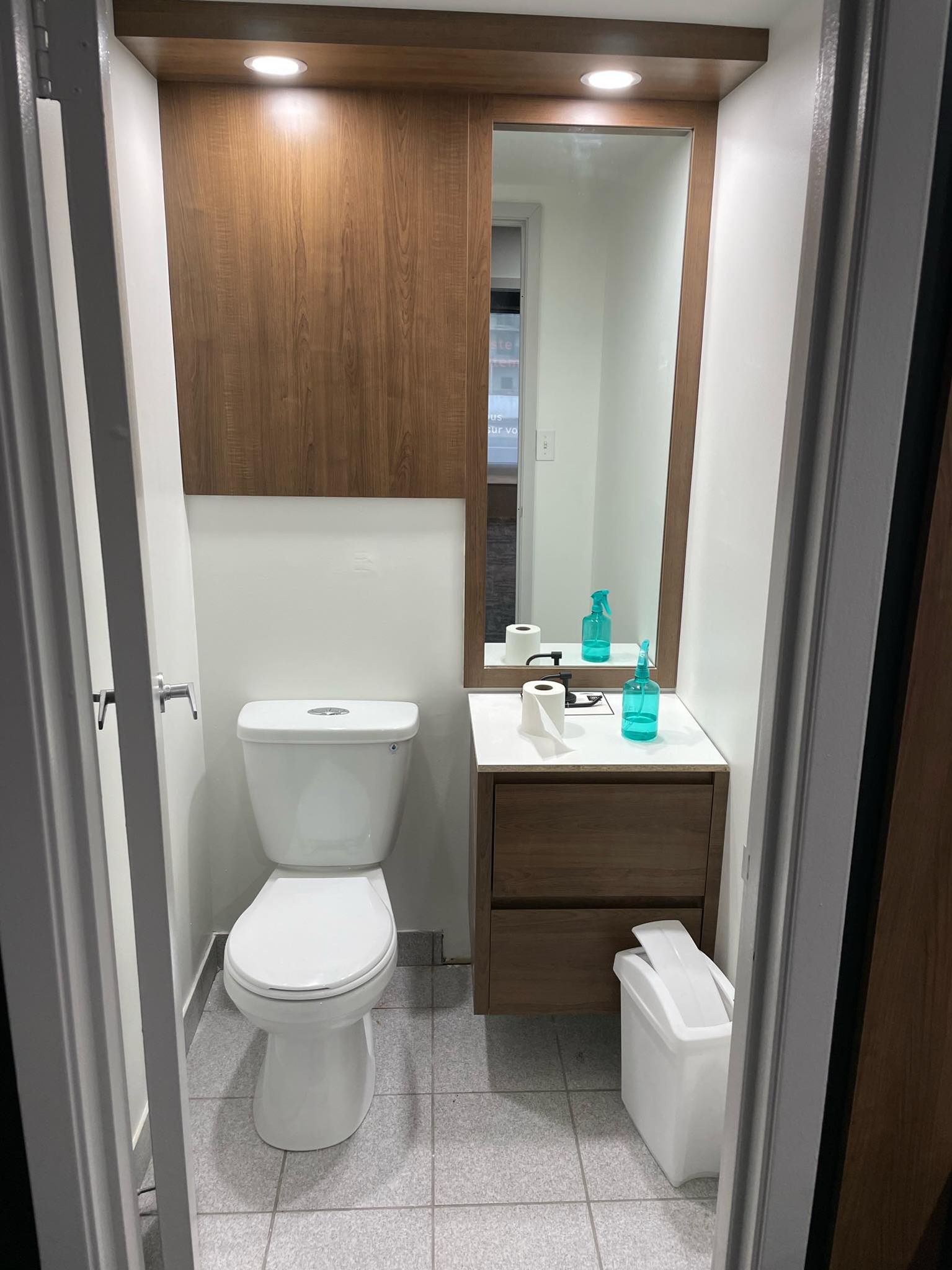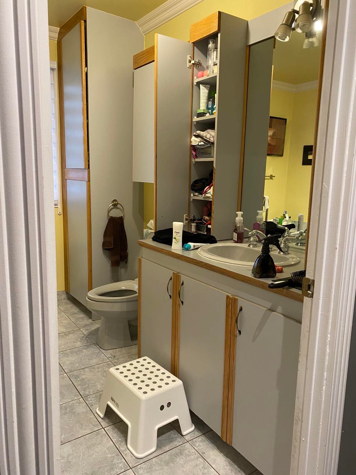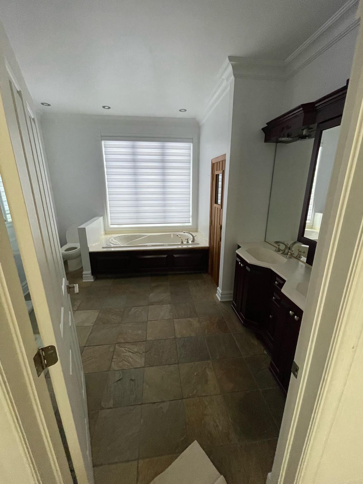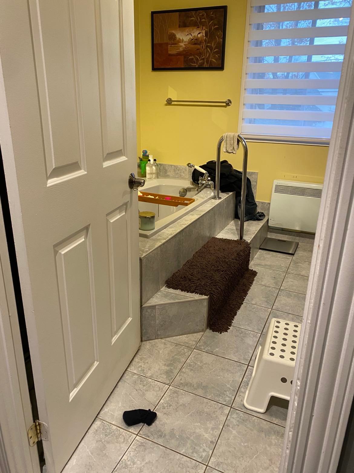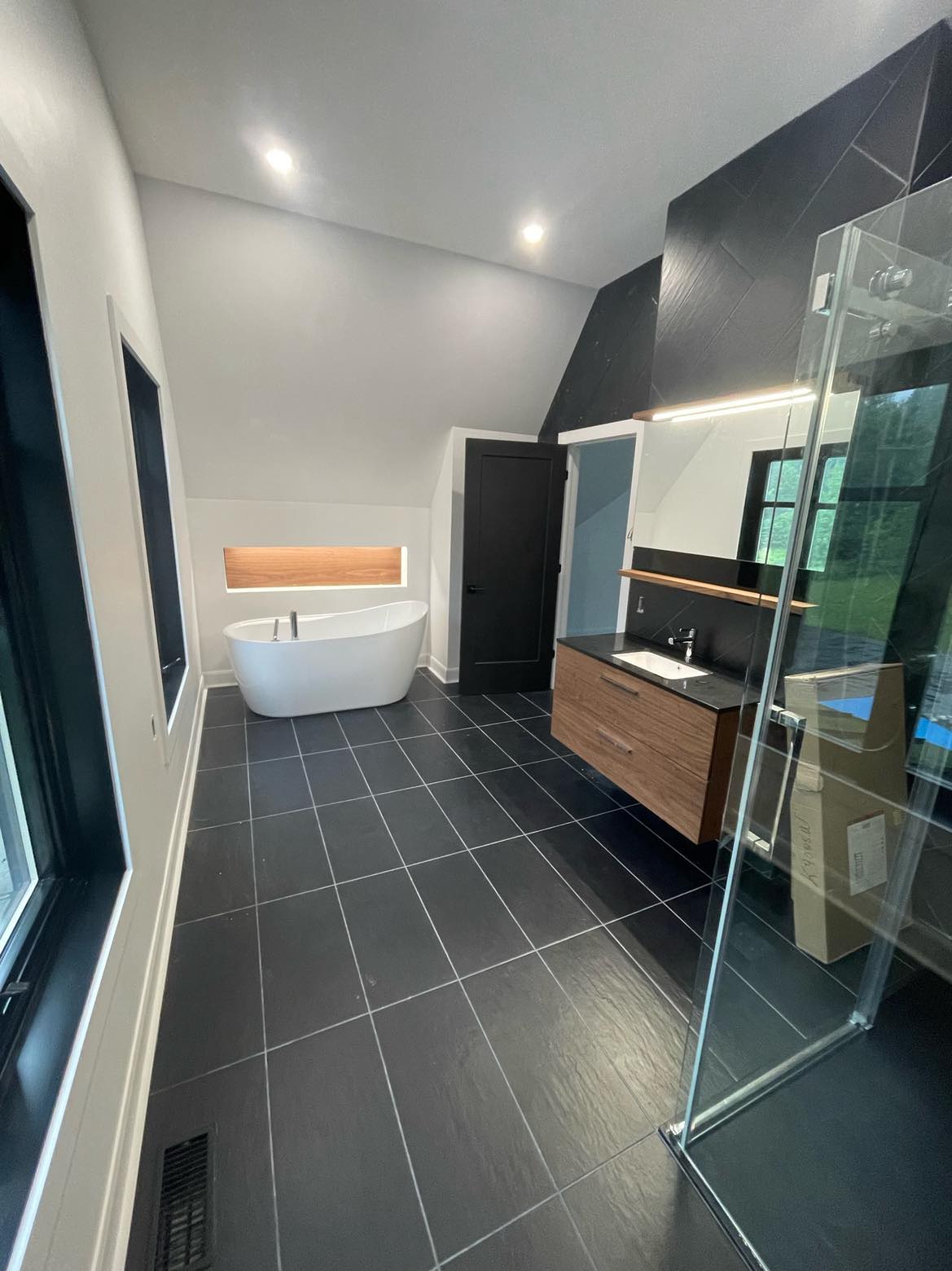 Avant notre visite, cette salle de bain avait besoin d’un grand coup de rajeunissement! Grâce au mur de céramique noir derrière la vanité, nous avons mis en valeur la hauteur de cette pièce.