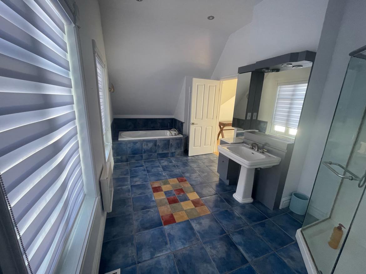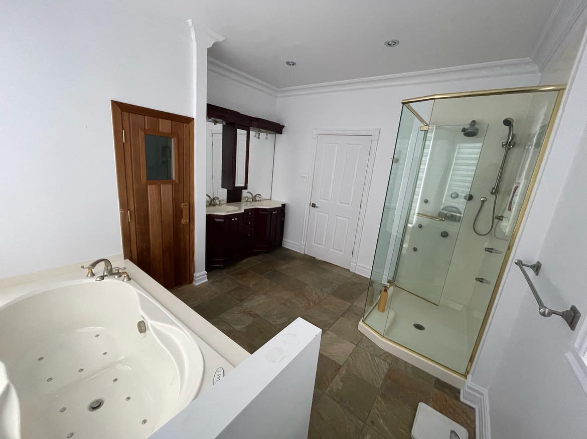 Nous avons repensé l’espace afin d’y intégrer une belle grande douche en céramique en plus d’un bain autoportant, ce qui donne une touche moderne à cette toute nouvelle salle de bain!