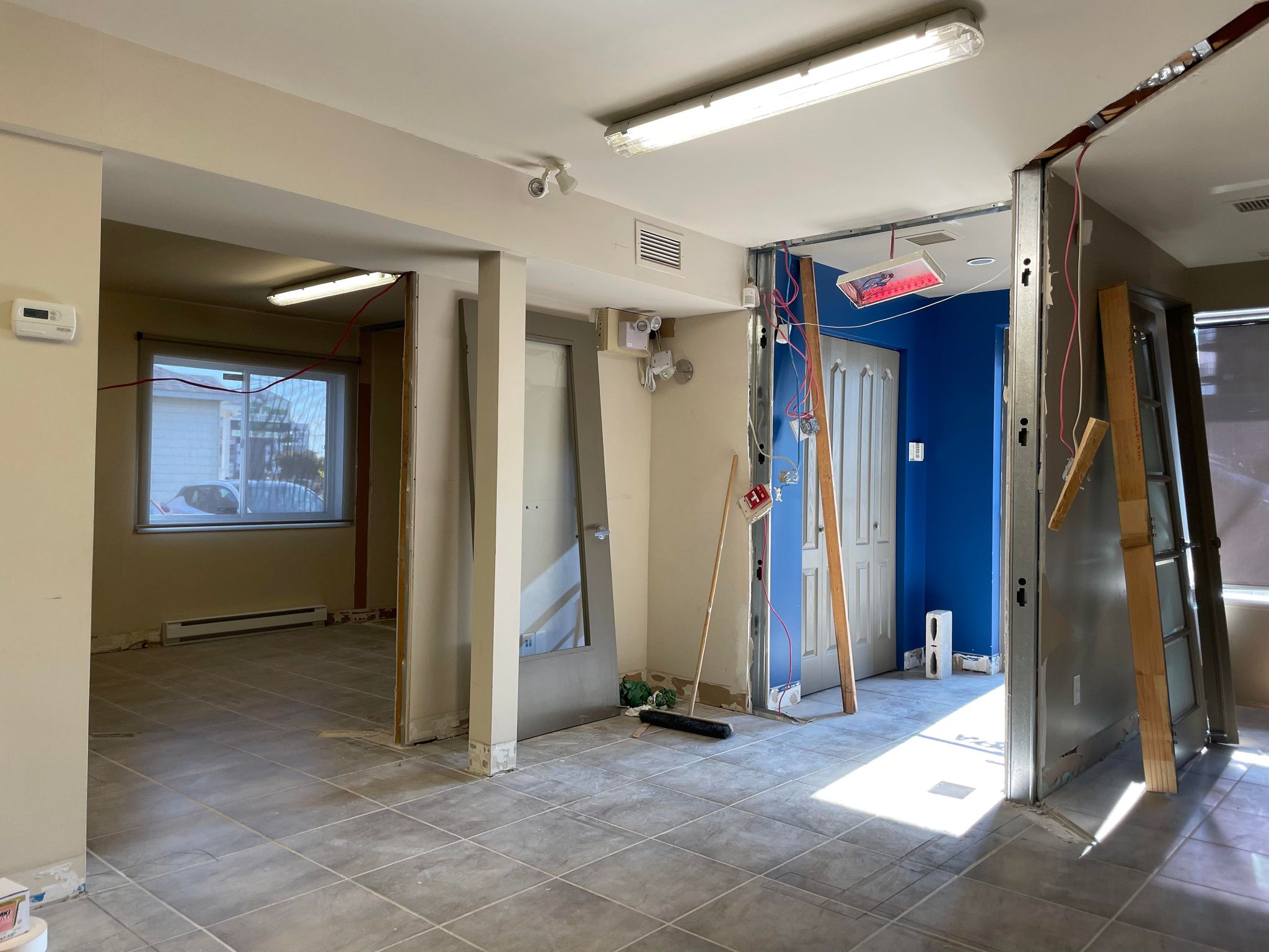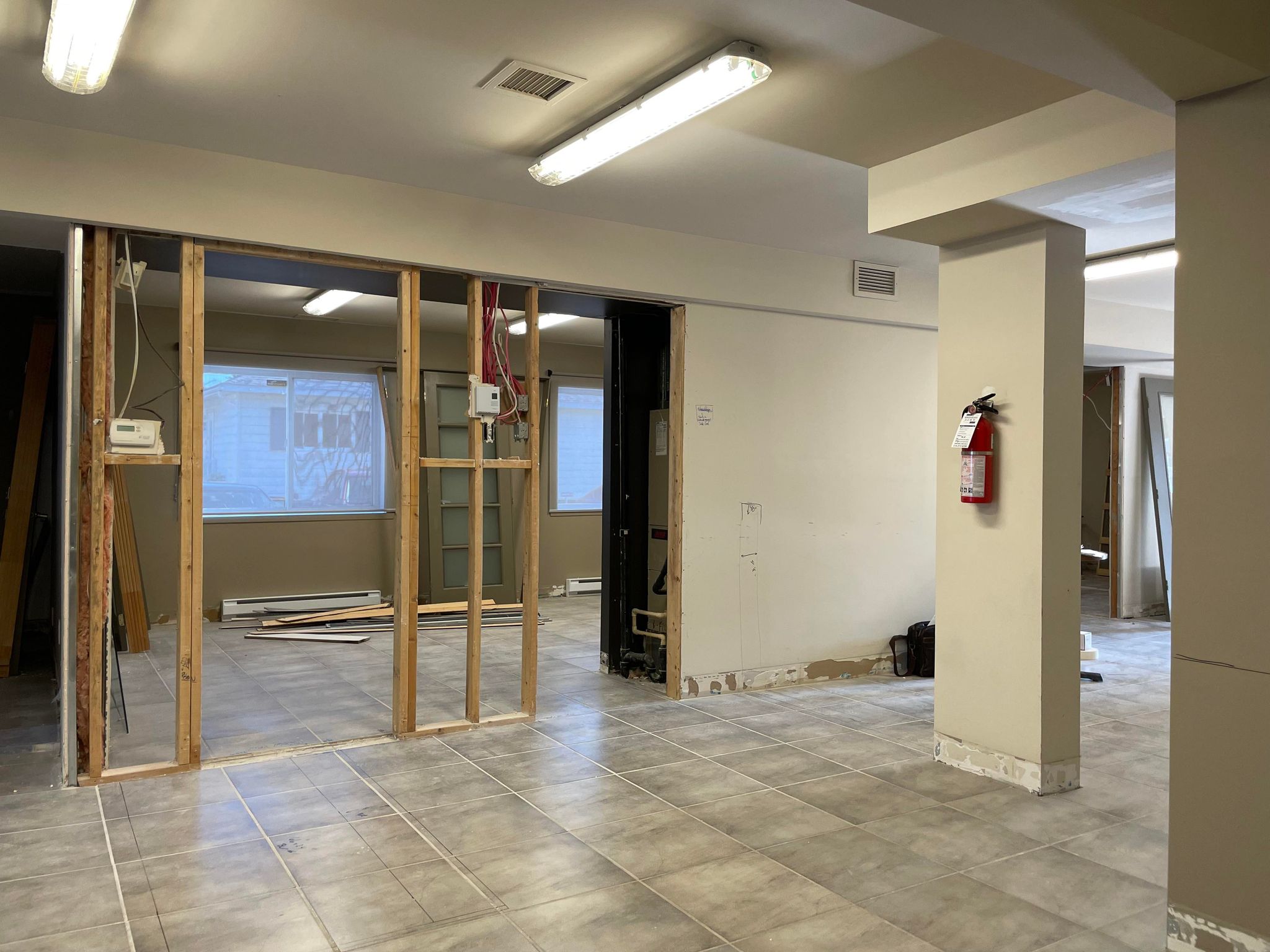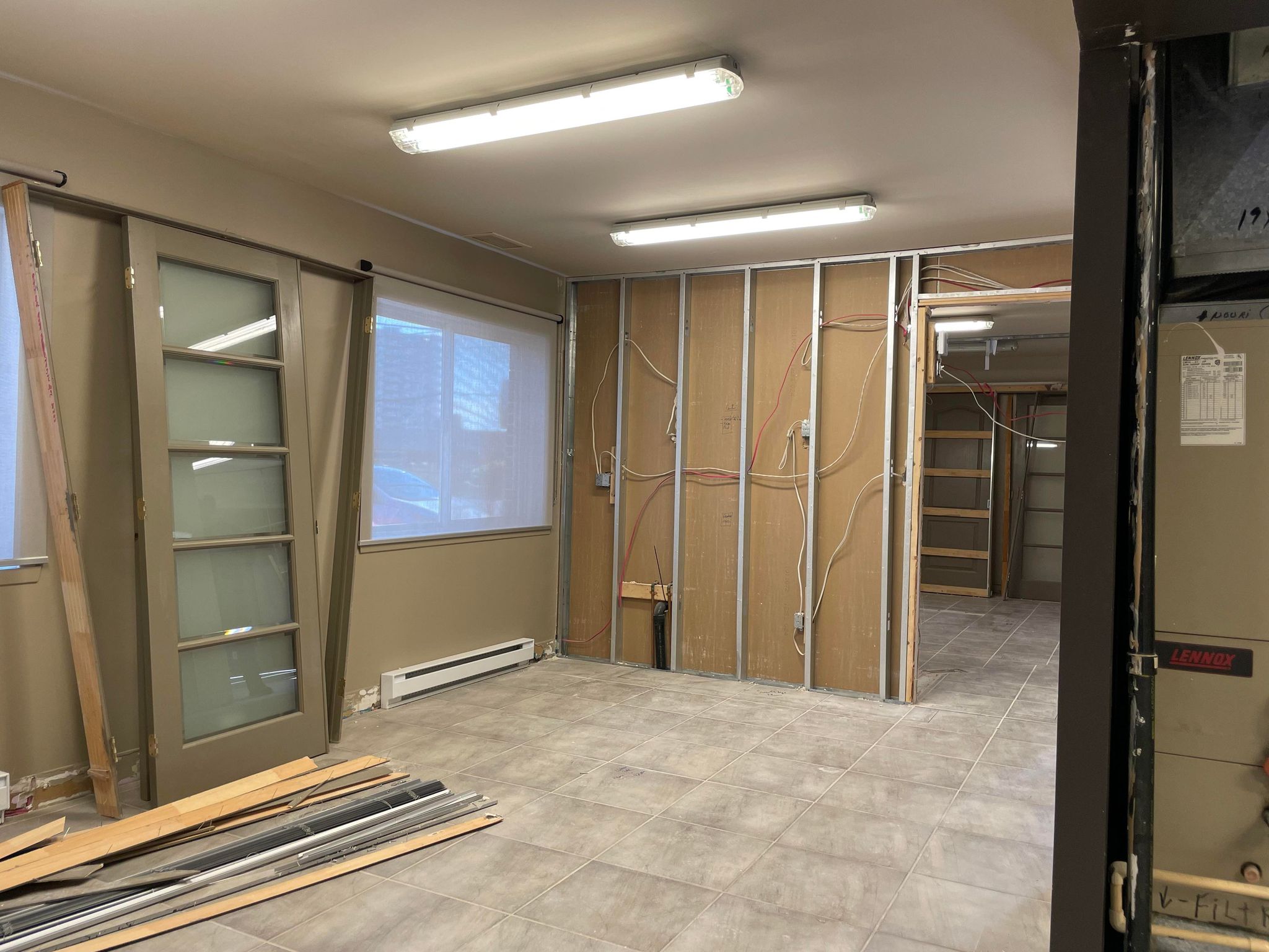 Création d’un poste d’accueil, d’une salle de conférence, d’un espace « cuisine » pour les employés, des bureaux, etc.