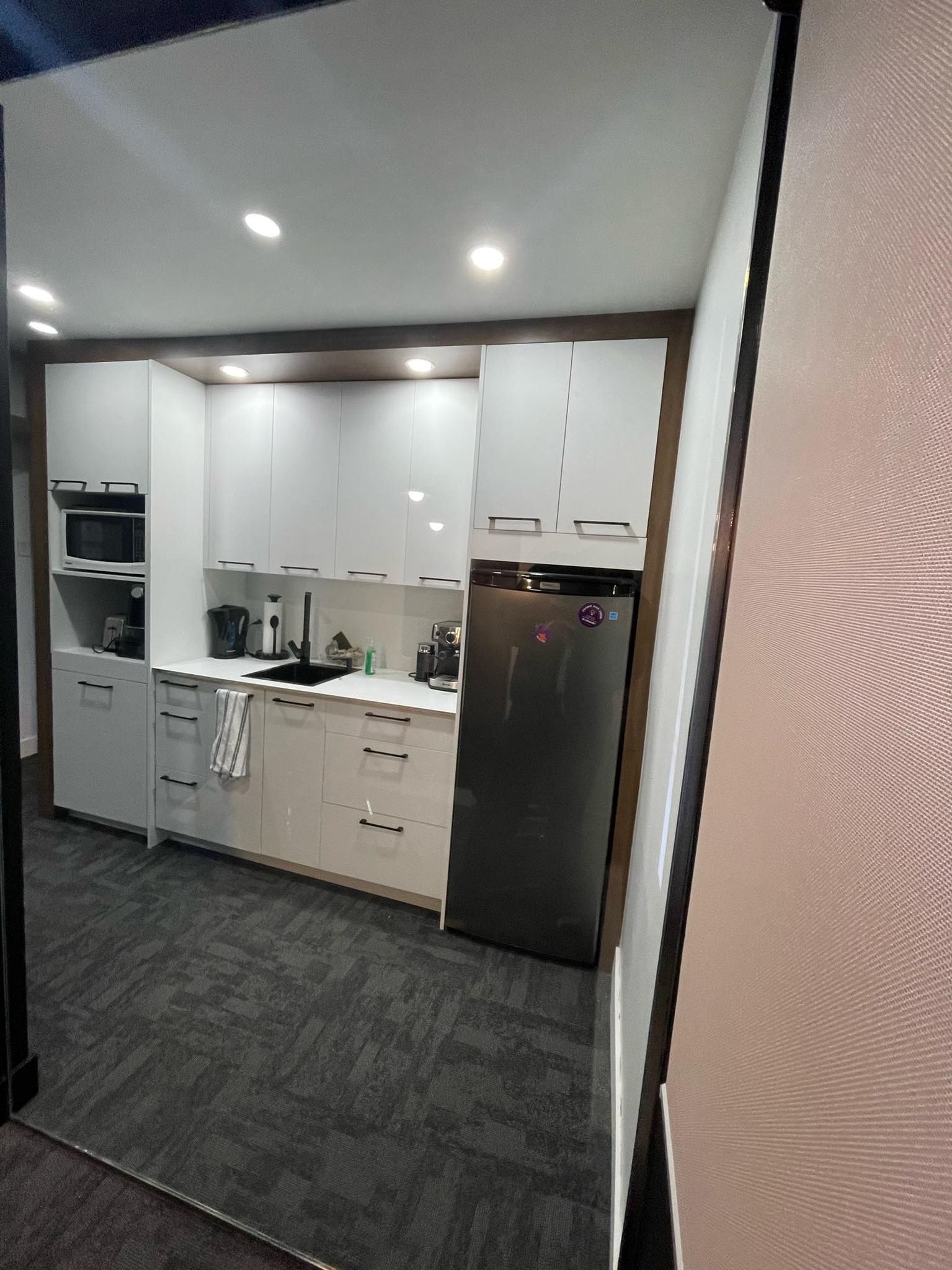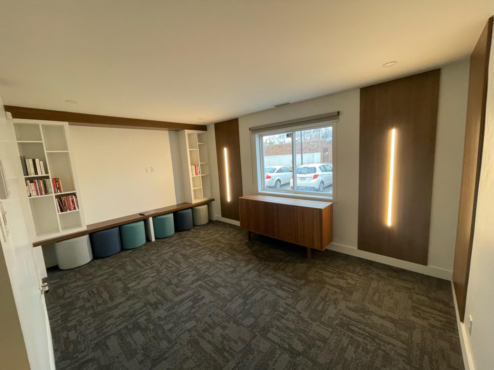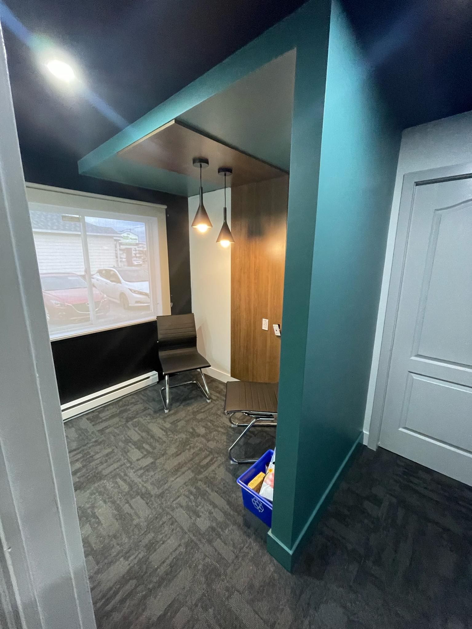 Création d’un poste d’accueil, d’une salle de conférence, d’un espace « cuisine » pour les employés, des bureaux, etc.